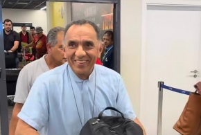 Dom Benedito foi recepcionado no Aeroporto de Teresina pelo administrador diocesano de Campo Maior, padre Gilcimar Lima