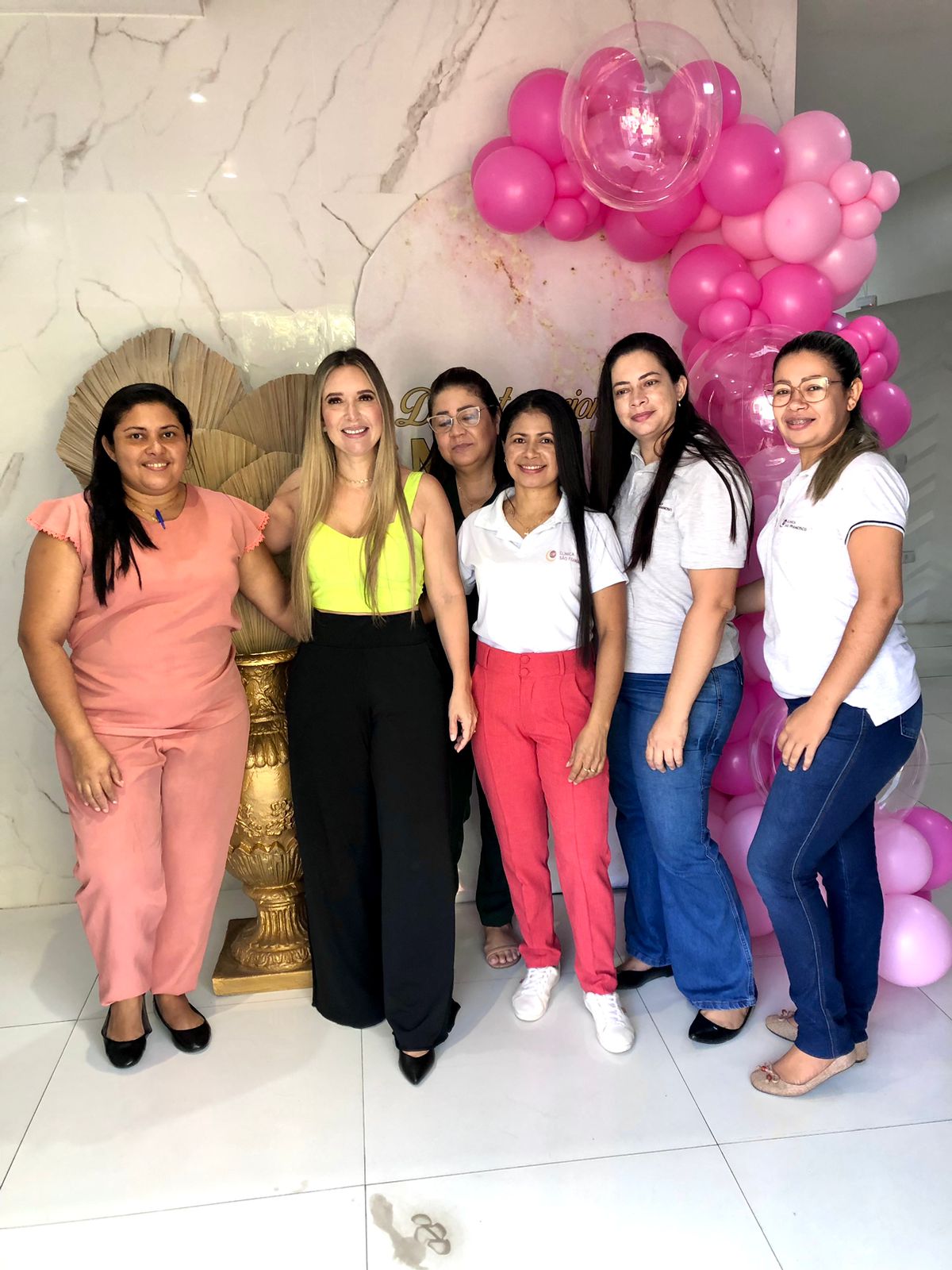 A Clínica São Francisco celebra crescimento dos negócios. No registro, clientes e colaboradoras reunidas para o Dia da Mulher