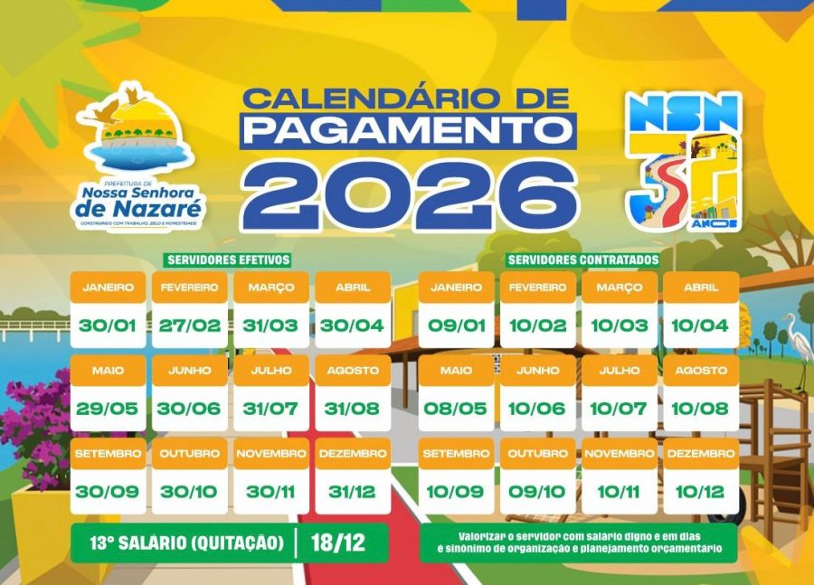 O prefeito de Nossa Senhora de Nazaré, Zé Henrique, lançou oficialmente, durante as comemorações pelos 32 anos de emancipação política do município, a tabela de pagamento dos servidores públicos referente ao ano de 2026.